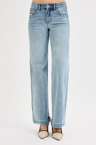 Light Wash Mid Rise Wide Leg Distressed Jeans