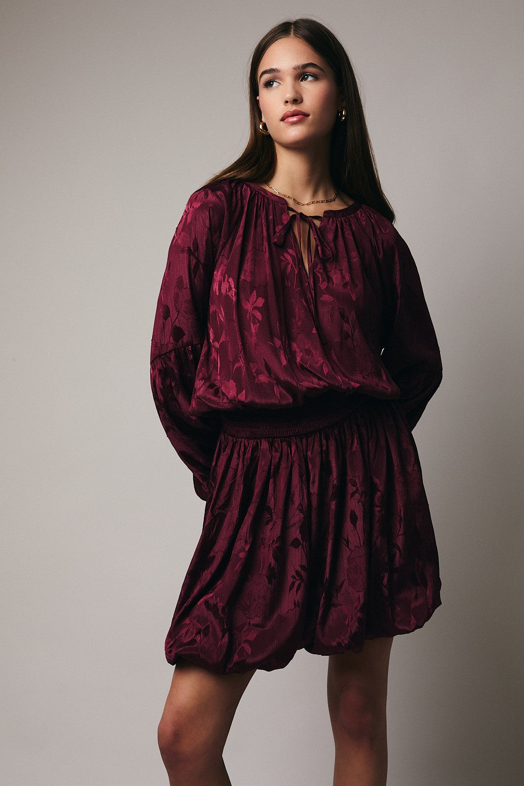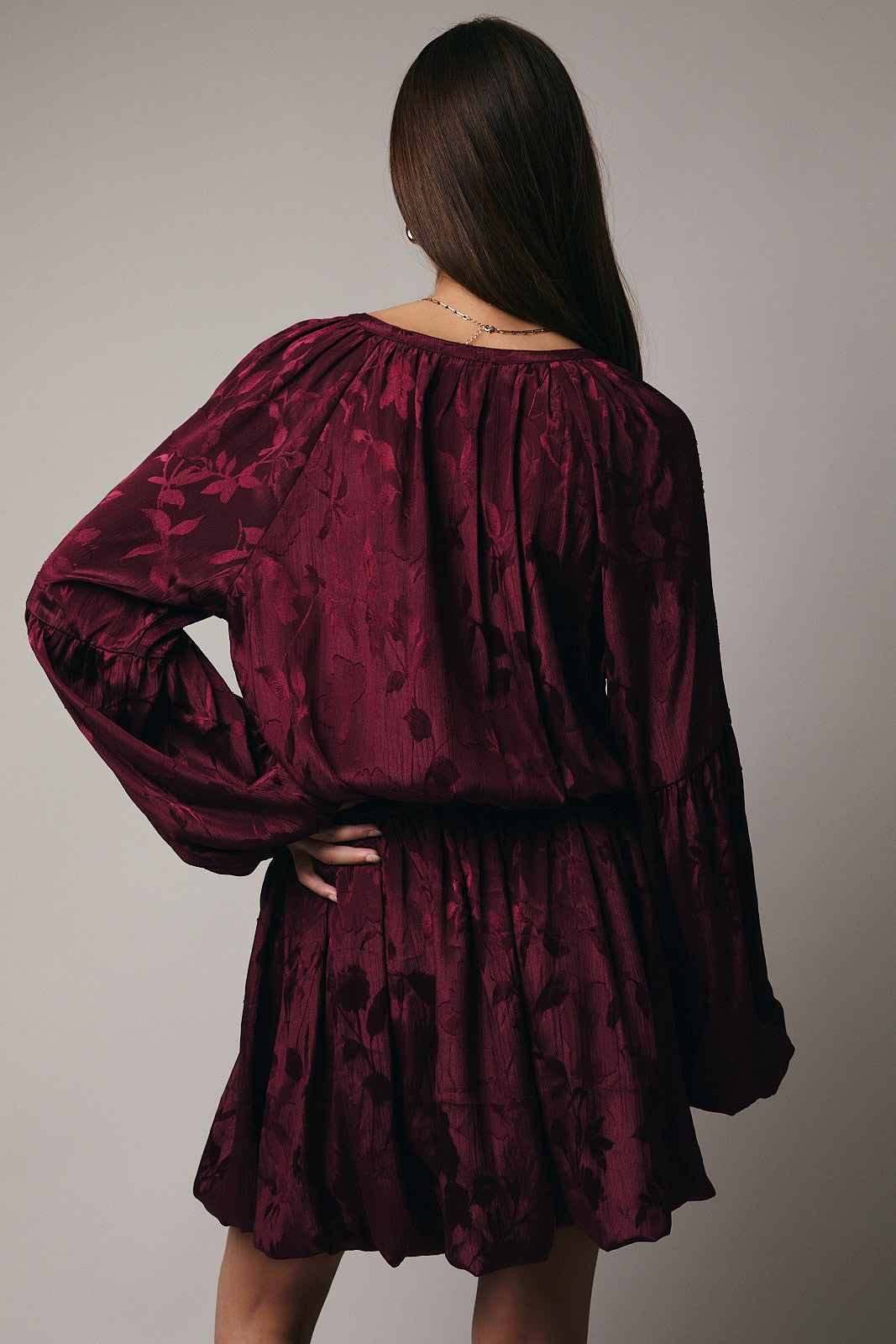 • Load image into Gallery viewer, Wine Long Sleeve Floral Print Mini Dress