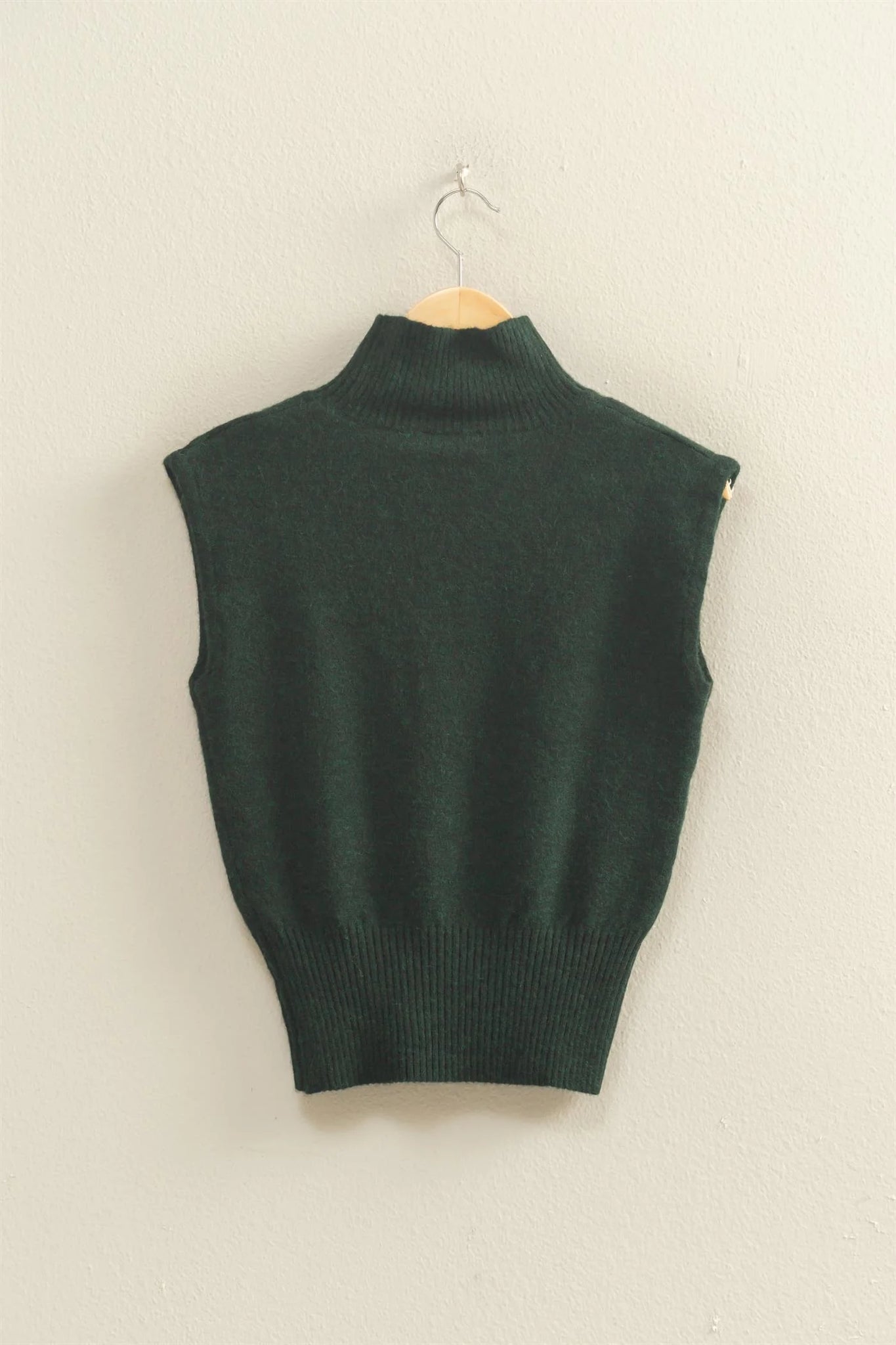 • Load image into Gallery viewer, Hunter Green High Neck Sleeveless Knit Top