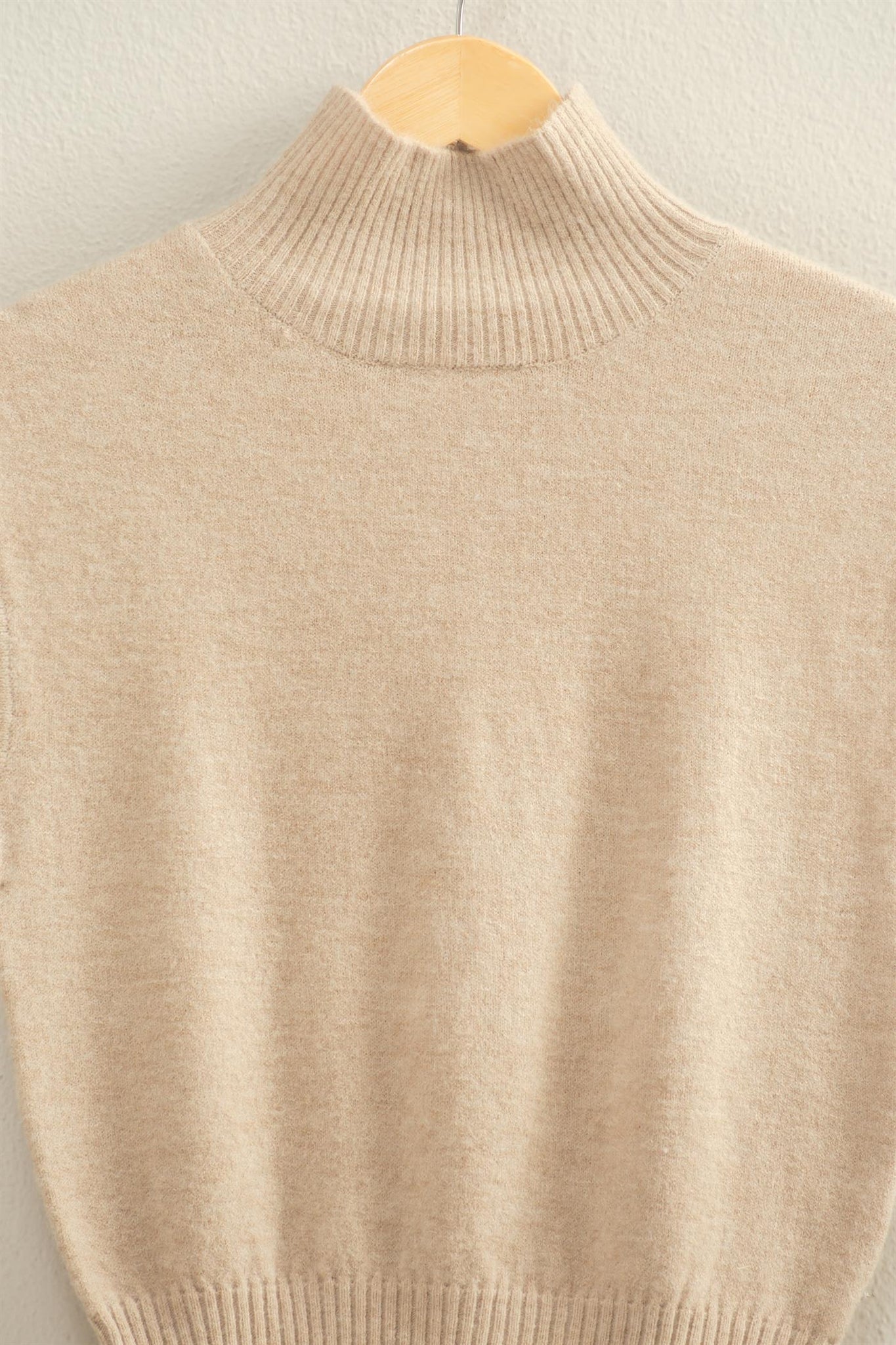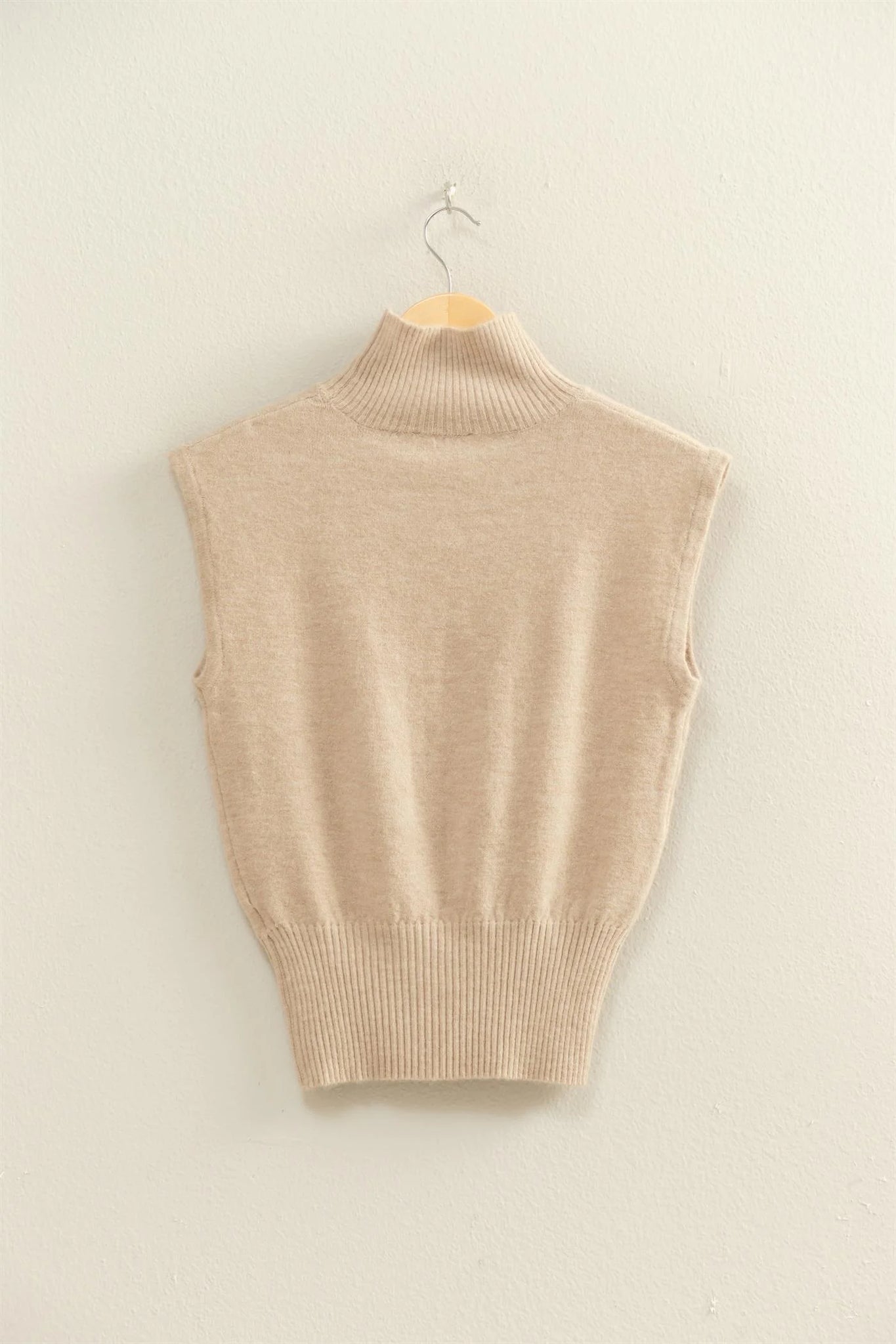 • Load image into Gallery viewer, Taupe High Neck Sleeveless Knit Top
